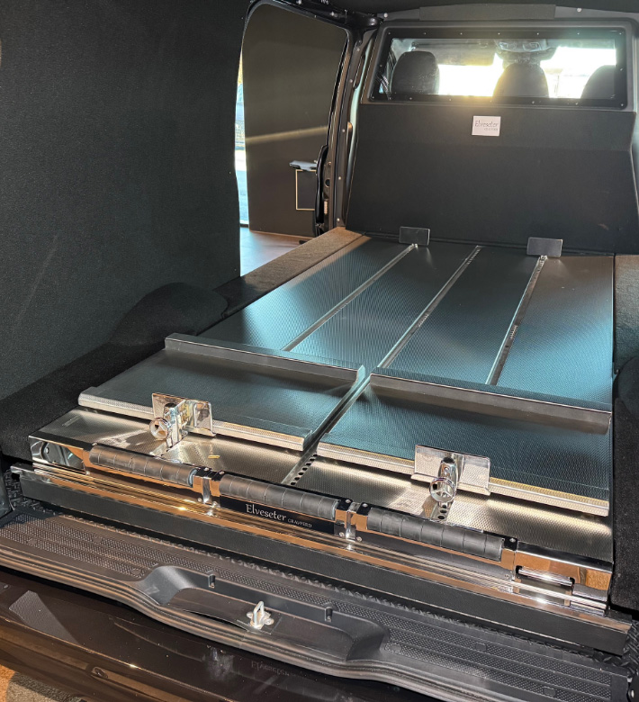 Det leveres også skyvebrett for begge kistene som gjør det enkelt å laste inn. for de som velger blomsterhyller vil de veldig enkelt kunne fjernes for å oppnå nødvendig plass. For diskret transport leveres også forblending på innsiden av både sidedørene og bakluken.