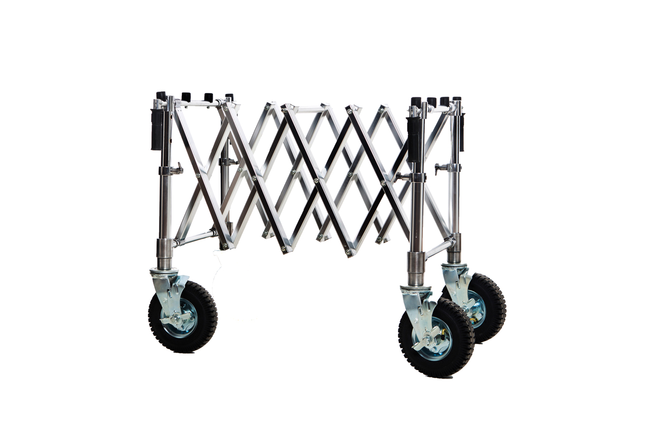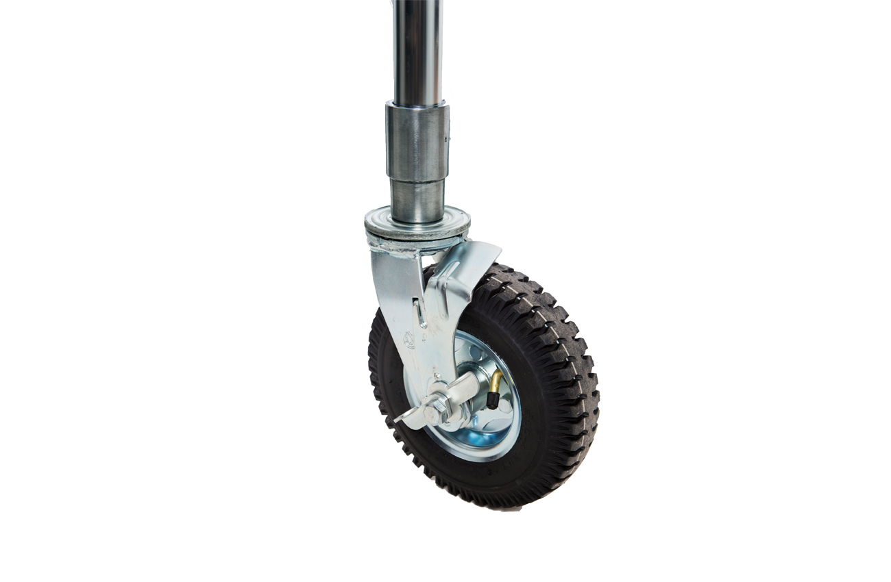 Kraftige hjul med luft og solide bremser i stål, kan låses i 3 forskjellige høyder som forenkler inn og ut lasting av bil.