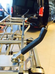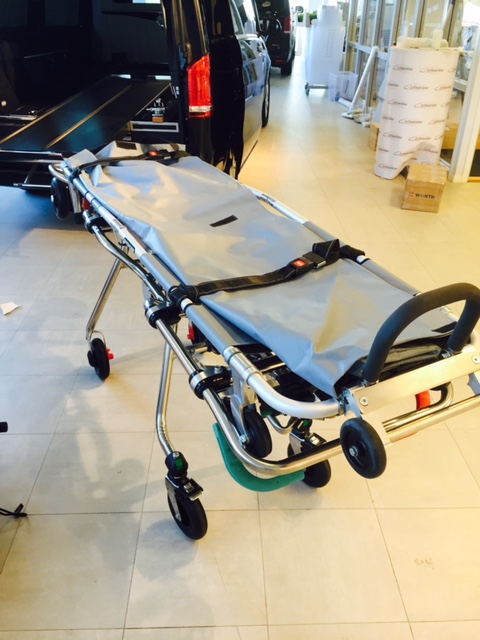 Enmannsvogn fra Spencer i høy kvalitet, betjenes veldig enkelt inn og ut av bilen se film som viser vognene i bruk (her brukt i ambulanse men har samme funksjon)
