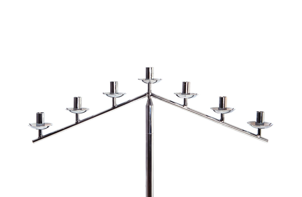 lysestake montert på sokkelhøyde i krom