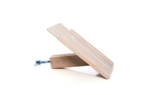 FS 1542 program holder i Stål kan festes direkte på bolten under gavekassen selv om den står på sokkelhøyde i Eik