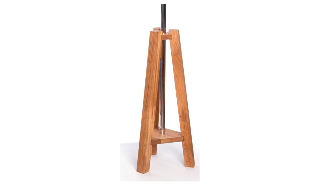 Sokkel i Eik med 3 ben, her kan valgfri sokkelhøyde i Stål settes på