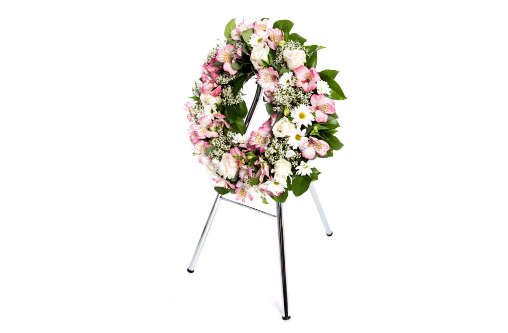 Et stort utvalg kranse og hjertestativer som settes direkte på gulvet eller på sokkel med valgfri høyde.