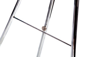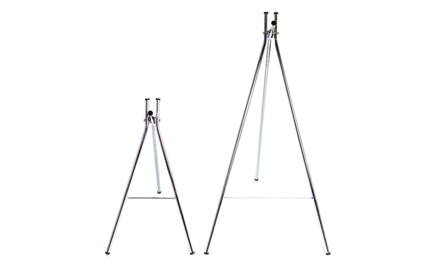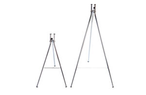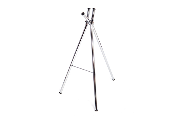 Gulvstativene med krok og bøyle kan ta av bakre bel av foten, kransestativene med 3 føtter kan slås sammen hvor bakre fot holdes fast med magnet.